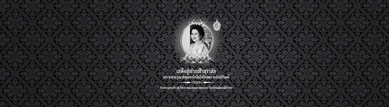 เสด็จสู่ฟากฟ้าสุราลัย พระมหากรุณาธิคุณจารึกในใจไทยตราบนิจนิรันดร์ ข้าพระพุทธเจ้า ผู้บริหาร คณะครู และบุคลากร โรงเรียนเมืองเด็กวิทยา